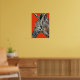 Eine Reproduktion eines Originalgemäldes von Georgia Pistolis. Es wird digital mit rotem Hintergrund reproduziert. Das Bild wird in drei anderen Farben gemacht und funktioniert wie eine Gruppierung.