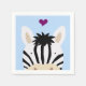 Zebra mit Herzpapier-Servietten mit passenden Tellern.