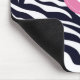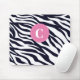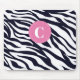 Ein quadratisches Mauspad mit einem schwarz-weißen Zebramuster in der Mitte mit einem rosa Monogramm. Sie können dieses Produkt mit Ihrem Namen oder Ihrer Initialisierung personalisieren, indem Sie die benutzerdefinierte Vorlage verwenden.