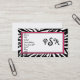 Eine Lehrergeschäftskarte mit einem Spaß-Schriftart und Zebra drucken Grenze mit rosa Akzenten. Addieren Sie Ihr eigenes Info und Initialen. Schriftartart, -größe und -farbe können unter Verwendung des Herausgebers geändert werden, wenn Sie wünschen.