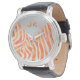 Zebra Monogramm Orange und Weiß Armbanduhr