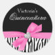 Zebra Pink Bow Diamond Quinceanera Runder Aufkleber
