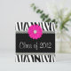 Zebra Abschluss Einladung. Stilvolles Schwarz-Weiß-Zebramuster mit einer Blume in rosa Diamantfarbe. Anpassen Sie einfach mit Ihren Veranstaltungsdetails! Eine freundliche und moderne Einladung des Abschlusses. Ideal für einen High School Abschluss, Uni-Abschluss oder Abschlussfeier!