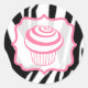 Ein Aufkleber mit einem Hintergrund des Zebradrucks. Rosa und weiße Kuchen in rosa Rahmen mit schierer Mitte. Suchen Sie nach passenden Einladungen in Jill's Paperie.