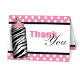 Stilvolle und moderne Baby Dusche Dankeschön Karten mit einem zebrafarbenen Muster Babyflasche über weißen Polka Punkte auf rosa entworfen. Das Innere wird mit Ihrer eigenen personalisierten Danksagung ausgedruckt und mit Ihrem Namen signiert, oder Sie können einfach den Vorlagentext löschen, um den Nachrichtenbereich für das Handschreiben Ihrer Gefühle leer verlassen. Diese zebra bedruckten Babyflaschen pink bedanken sich für Ihre zebrafarbenen oder zebrathematischen Babyduschenfeiern. Keine Mindestbestellung. Es gelten Massenermäßigungen.
