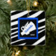 Das ist ein trendiger Weihnachtsschmuck für den Cheerleader in deinem Leben! Es hat einen schwarz-weißen Zebrahintergrund mit einem hellblauen Quadrat. In der Mitte ist ein schwarzer Hintergrund mit einem weißen Megaphon, das das Wort "Cheer" auf Diagonal hat. Personalisieren Sie mit Ihrem Namen im Zentrum von Megaphon und können auch Jahr hinzufügen. Karo aus den vielen anderen Designs und Farben in dieser Linie. Bewahren Sie diesen Sake für viele, viele Jahre! ©JW Illustrations