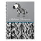 Schwarzweißzebramuster bedecken die untere Hälfte dieses niedlichen Notebooks. Die obere Hälfte ist ein Pastellgrau mit einem niedlichen, kawaii zebra stehend über eine Vorlage, um Ihren Namen zu personalisieren für das perfekte Geschenk hinzufügen.