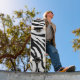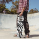 Plateau de skateboard avec imprimé zèbre / tigre blanc dessus.