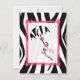 Une invitation baby shower avec un arrière - plan d'impression zébrée et une section centrale en rose vif sur l'avant et l'arrière. Caractéristiques avant illustration d'un parapluie imprimé zèbre avec arc rose sur la poignée. Le texte "Baby shower" est suspendu à la poignée. Personnalisez le côté opposé avec les détails de votre occasion.