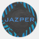 Zebra Schwarz und Blau mit Monogramm Runder Aufkleber