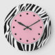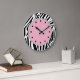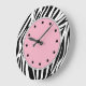 Zebra-Wanduhren mit schwarz-weißem Zebrastreifen-Muster und rosa Hintergrund auf der Uhr Gesicht in dieser Wand Dekoration Tier-Uhr Design für Ihre Küche, Bad, oder jedes Zimmer in Ihrem Haus gewollt, um etwas Farbe und Charakter hinzuzufügen. Ideal für afrikanische Dekoration oder Naturliebhaber.