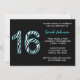 Invitation vos invités avec style avec cette invitation à la fête d'sweet sixteen sur le thème du zèbre ! Joli et amusant — Montré en bleu et noir turquoise. Personnalisez facilement vos informations de groupe.