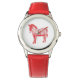 Kinderuhr aus Edelstahl mit rotem Lederarmband