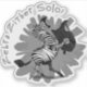 Ein Zebra steht auf seinen Hinterbeinen und spielt begeistert Zither. Umgeben ist es der stylische Text "Zebra Zither Solo!".