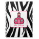 Un carnet de notes à spirale comportant une conception noire et blanche d'impression de zèbre. Carré rose d'intérieur d'école au centre. Personnalisez avec votre nom.