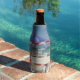 Eine coolere, maßgeschneiderte Flasche mit einem Bild, das an einen Stuhl erinnert, am Strand, unter einem riesigen Regenschirm... die Wellen beobachten, mit den Zehen im Sand.