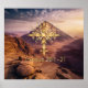 Fiery goldenes Kreuz mit Wüstenbergen mit Typografie-Design.