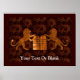 Eine computergenerierte "Holzschnitzerei" im traditionellen Stil; Löwen, die die zehn Gebote bewachen. Fügen Sie Ihren eigenen Text hinzu.