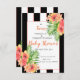 Eine helle tropische Blume auf einer Karte, die personalisiert sein kann. Fügen Sie Ihre eigenen Namen, Veranstaltungsorte und Daten zu den anpassbaren Leerzeichen hinzu. Sie können sogar das Wort Zwillinge in Babys ändern, wenn Sie gewollt haben. Die Blume sind in schwarz-weiß gestreiften Streifen mit einer subtilen Korallenrosa-Linie gestaltet, um das tropische Ambiente zu unterstreichen.