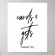 Dieses skurrile Kalligrafiekarte und Geschenkschild ist perfekt für eine moderne Hochzeit oder ein modernes Brautparty. Das Design zeichnet sich durch eine elegante und dennoch rustikale Typografie aus, die einen schlichten minimalen Look garantiert. Die Textzeile am Ende des Zeichens kann mit dem Datum, den Namen der Braut und des Bräutigams personalisiert werden, oder mit einer kurzen Nachricht wie "Danke". Dieses Schild kann für eine Hochzeit oder für jede Veranstaltung oder jedes Party verwendet werden.