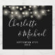 Elegantes Schwarz-Weiß Hochzeitsdesign mit hübschen Saitenleuchten, Signaturstilnamen und Ihrem besonderen Hochzeitsdatum. Entwickelt von Thisisnotme©