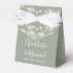 Elegante Weissgrün-Gastgeschenk Hochzeit mit hübschen Saitenleuchten, stilvollen Signaturskriptnamen und einem besonderen Datum-Set in moderner Typografie. Sie können mit Ihrer eigenen Danksagung unter dem Deckel personalisieren. Ein perfekter Weg, um sich bei Ihren Gästen zu bedanken! Entwickelt von Thisisnotme©