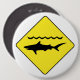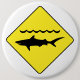 Knöpfen Sie mit einem gelben Verkehrszeichen mit einer Ikone "des warnenden Haifischs".