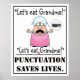 Dieses Poster macht komisch deutlich, dass Satzzeichen in der englischen Sprache sehr wichtig sind. Ein Komma kann den Unterschied zwischen Oma essen oder Oma essen gemein machen.