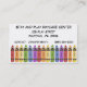 Dieses Ausrüstungsbeschreibungen einige glückliche Zeichenstifte. Besitzen Sie Ihr eigenes Kindertagesstättengeschäft? Diese niedlichen Geschäftskarten sind für Sie groß. Der TEXT kann mit Ihren eigenen Informationen besonders angefertigt werden, indem man zu den Textboxen geht und sie ändert.