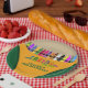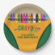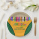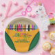 Zeichenstift-Party-Teller. Entworfen mit einem Zeichenstiftartkasten und einem bunten Regenbogen der Zeichenstifte. Zusätzliche Zeichenstift-Partyversorgungen sind an Metro-Event.com und an den Metro-Ereignissen auf Zazzle verfügbar.