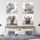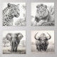 Afrikanischer Büffel, afrikanischer Elefant, afrikanischer Löwe, afrikanischer Leopard. Zeichnend Stift