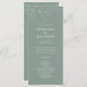 Dieses individuell anpassbare Hochzeitszeremoniell-Programm, das sich mit unserer Line Art Foliage Collection abstimmt, zeichnet sich durch eine elegante Linie aus, die Blätter aus Blattwerk zeichne, die mit einem klassischen Schriftart auf einem halbgrünen Hintergrund versehen ist. Es handelt sich um eine minimalistische und elegante Hochzeitssuite. Für eine erweiterte Anpassung dieses Designs, z.B. das Ändern des Layouts, des Schriftartes oder der Textgröße, klicken Sie bitte auf den obigen Button "KENNEN". Bitte kontaktieren Sie mich für weitere Fragen!
