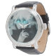 Uhr, Vintage Männeruhr mit schwarzem Lederarmband