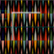 Dieses Gewebe hat ein modernes Design von Dreiecken, die sich gegenüberstehen, wiederholt über das Design.
