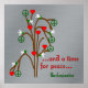 Die Zweige eines nackten Baumes sprießen Friedenssymbole und Herzen mit Tauben, die Blätter an die leeren Gliedmaßen bringen. Der Text ist ein Fragment aus dem berühmten Vers von Ecclesiastes "...und eine Zeit des Friedens..."