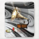 Zeit in der Retro Mausunterlage. Grammophon mit Rose und einer Uhr auf einem retro Schwarzweiss-Strudelhintergrund.