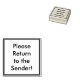 Dieses zeitgenössische Design aus Gummi-Briefmarke zeigt die Meldung "Bitte zurück zum Sender!". Es könnte vielleicht verwendet werden, um anzugeben, dass die empfangene Post falsch adressiert wurde, und sollte an den Absender zurückgeschickt werden.