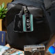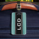 Personalisierte männliche 3 Buchstaben monogramm Reisegepäck Tag. Klassisches schwarz-aqua-grünes Stripmuster-Design mit mit Monogramm, weißen Anfangsbuchstaben, dh LCD. Elegante Geschenkidee für Männer. Manche Farbkombinationen. Horizontale Streifen in eigener Farbe. Modernes Label für klassische Taschen und Koffer.