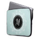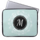 Trendy Laptop-Ärmel mit Minz blauen Blumenkranz und personalisiertem Monogramm.