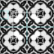 Modernes Design mit einem nahtlosen Muster aus geometrischen Formen in Schwarz und Weiß.