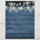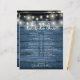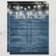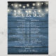 Diese rustikale Saitenleuchte Hochzeitstundenzeitlinie kann personalisiert werden mit Ihren Hochzeitsdetails Set schicke weiße Schrift auf einem blauen Holzpaneelhintergrund. Entwickelt von Thisisnotme©