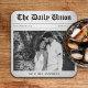 Cooler Zeitungsartikel Hochzeitsempfang Untersetzer. Personalisieren Sie es mit Ihren Veranstaltungsdetails und einem Foto der Braut und Bräutigam.