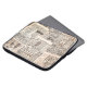 Zeitungsseiten mit antiker Werbung. Frau Laptopschutzhülle