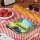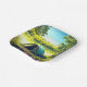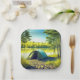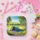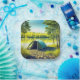Hübsche Luftkunst, die ein Zelt in einem friedlichen Waldgebiet neben einem See darstellt.