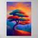 Zen Bonsai Tree Pointillism Landscape Art Poster