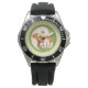 Uhr, Vintage Männeruhr mit schwarzem Lederarmband