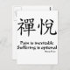 Kanji für Zen-Freude mit dem Zen-buddhistischen Sprichwort: "Schmerz ist unvermeidlich, Leiden ist freiwillig".