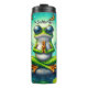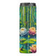 Diese ruhige Abbildung zeigt einen grünen Frosch mit einer Sonnenbrille, der in einer Lotusposition auf einem Felsen in einem ruhigen Teich sitzt, mit seinen Händen in einer Gebetsgeste. Die Szene ist voll von Seerosen, Bambusstalks, Schmetterlingen und kleinen Fischen, die alle unter einem Sternenhimmel stehen und eine friedliche und meditative Atmosphäre schaffen.