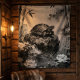 This serene zen turtle tapestry features a majestic tortoise resting on a moss-covered rock in a peaceful pond surrounded by bamboo stalks, blooming lotus flowers, and gentle water ripples. Created with flowing black and white ink wash painting techniques, the artwork captures detailed shell patterns, delicate lotus petals, and atmospheric mist that creates a meditative, ethereal ambiance. Perfect for nature lovers, meditation spaces, zen interiors, yoga studios, cabin decor, or as a meaningful gift for mindfulness enthusiasts and wildlife admirers. This premium quality tapestry (50" x 60") brings the tranquil wisdom of eastern aesthetics into any space, creating a peaceful, harmonious, and contemplative atmosphere ideal for bedrooms, living rooms, offices, or spiritual spaces.