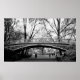 Der anmutige Bogen einer schönen Brücke, die einen der vielen wunderschönen Treppenwege des Central Park überspannt, umrahmt Spaziergänger an einem unangenehmen Tag.